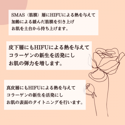 皮下層にもHIFUによる熱を与えてコラーゲンの新生を活発にし、お肌の弾力を増します😊💕
