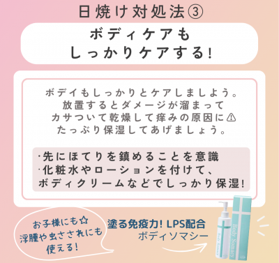 日焼けして72時間以内のケアを😎☀️