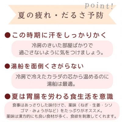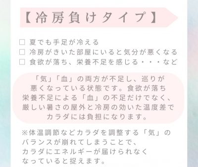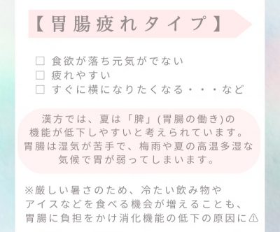 漢方でみるタイプ別の「夏の疲れ・だるさ予防」の生活ポイントも♪